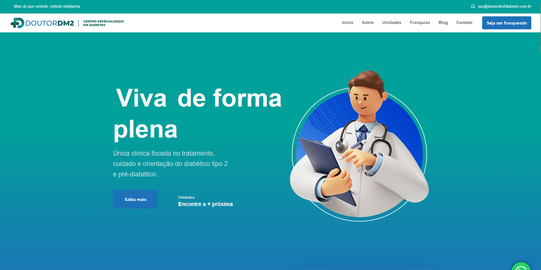 O Doutor DM2 precisava de um site institucional que apresentasse o método de tratamento, seus diferenciais e conteúdos de maneira clara, acessível e profissional. O grande desafio foi estruturar informações de saúde de forma organizada, tornando-as compreensíveis para o público geral, e facilitar o contato com profissionais e orientadores do método.
