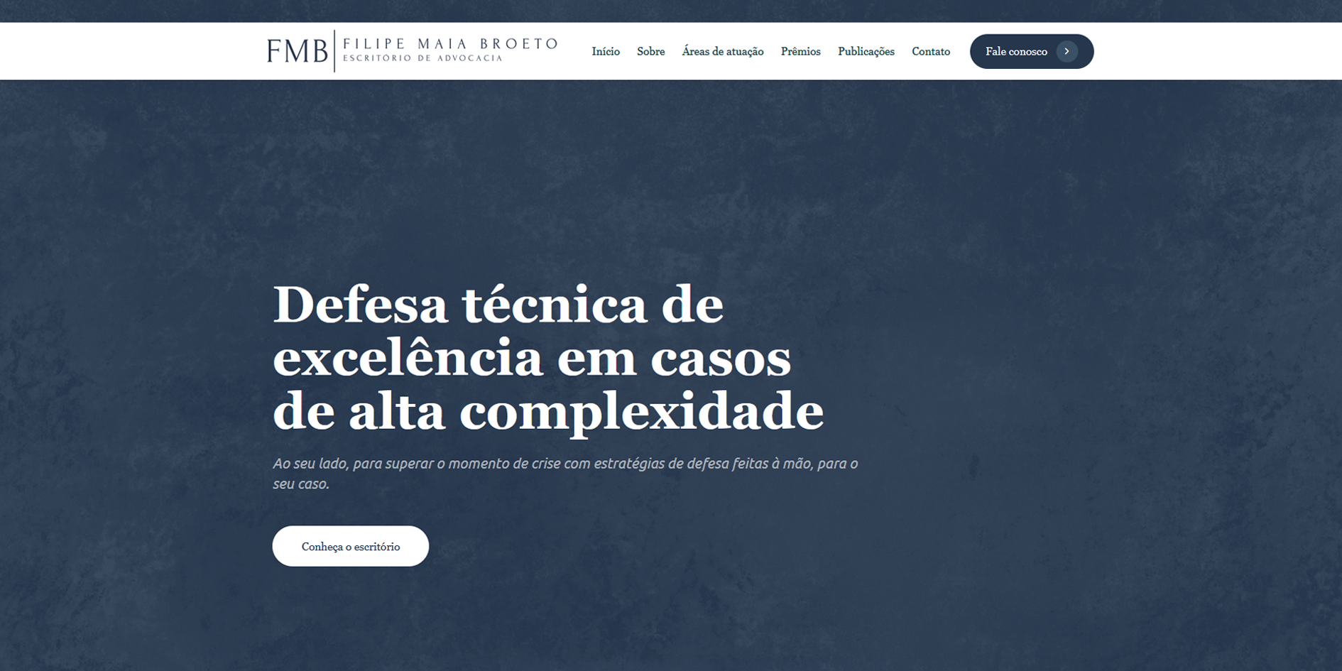 O escritório Filipe Maia Broeto atua na prestação de serviços jurídicos com foco em excelência, competência técnica e atendimento personalizado. Sua presença digital precisava transmitir credibilidade, profissionalismo e clareza na apresentação das áreas de atuação, valores e abordagem estratégica.